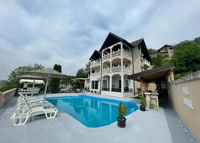 Neben den Annehmlichkeiten für Selbstversorger wie einer kompletten Küche bietet die Unterkunft auch eine Essecke. Sie können auch eine Mikrowelle, einen Kühlschrank und einen Wasserkocher nutzen, um Ihre eigene Mahlzeit zuzubereiten. Die Bushaltestelle Dobrosevici ist nur ein paar Fahrminuten entfernt von der Villa. Diese Villa verfügt über eine Terrasse, wo Sie sich nach einem anstrengenden Tag entspannen können, sowie über einen Swimmingpool.